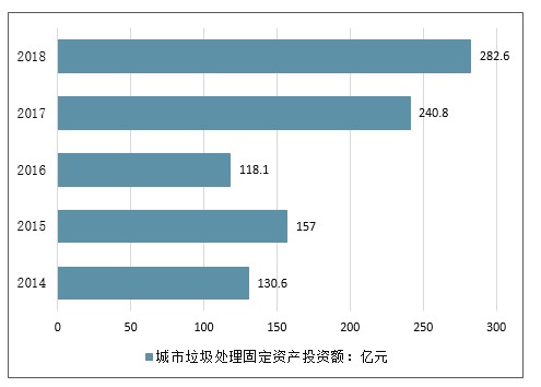 2014-2018年我國城市垃圾處理固定資產(chǎn)投資額走勢