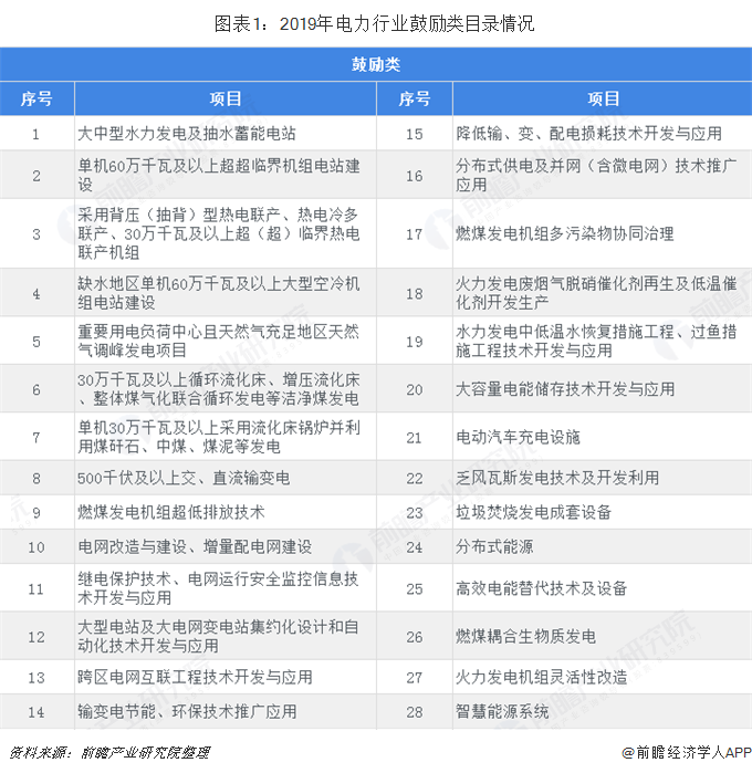 在2019版指導(dǎo)目錄中,電力行業(yè)鼓勵(lì)類共有28項(xiàng),包括大中型水力發(fā)電及抽水蓄能電站、單機(jī)60萬千瓦及以上超超臨界機(jī)組電站建設(shè)、燃煤發(fā)電機(jī)組超低排放技術(shù)、跨區(qū)電網(wǎng)互聯(lián)工程技術(shù)開發(fā)與應(yīng)用等項(xiàng)目。